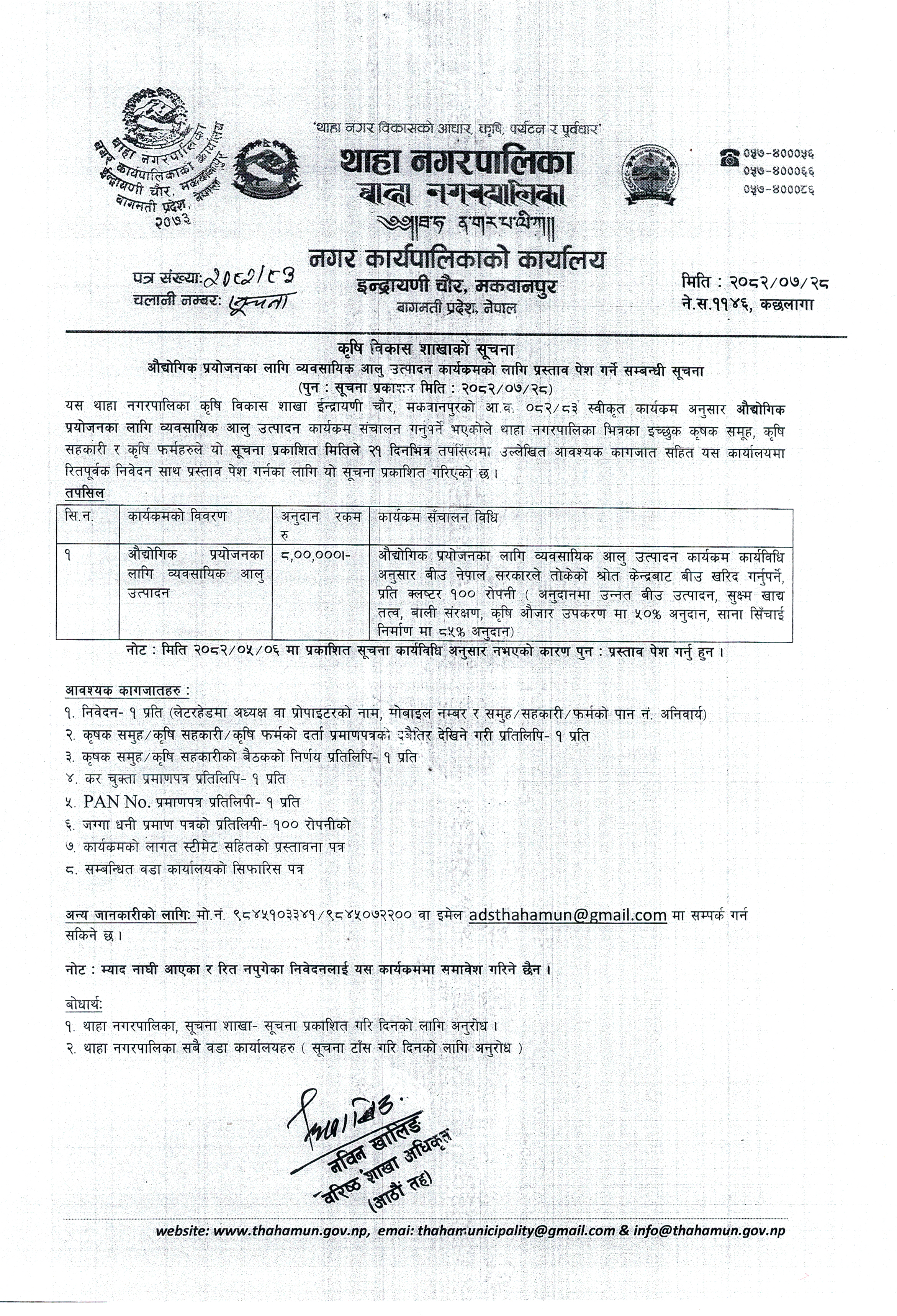 थाहानगरमा ५० प्रतिशत अनुदानमा कृषि सामाग्री (हेर्नुहोस् सूचना)