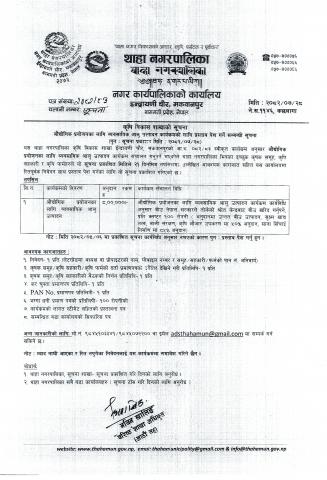 ७०/३० मा अनुदानमा आधारित योजना संचालन सम्बन्धी सूचना (वडा कार्यालय सबै )