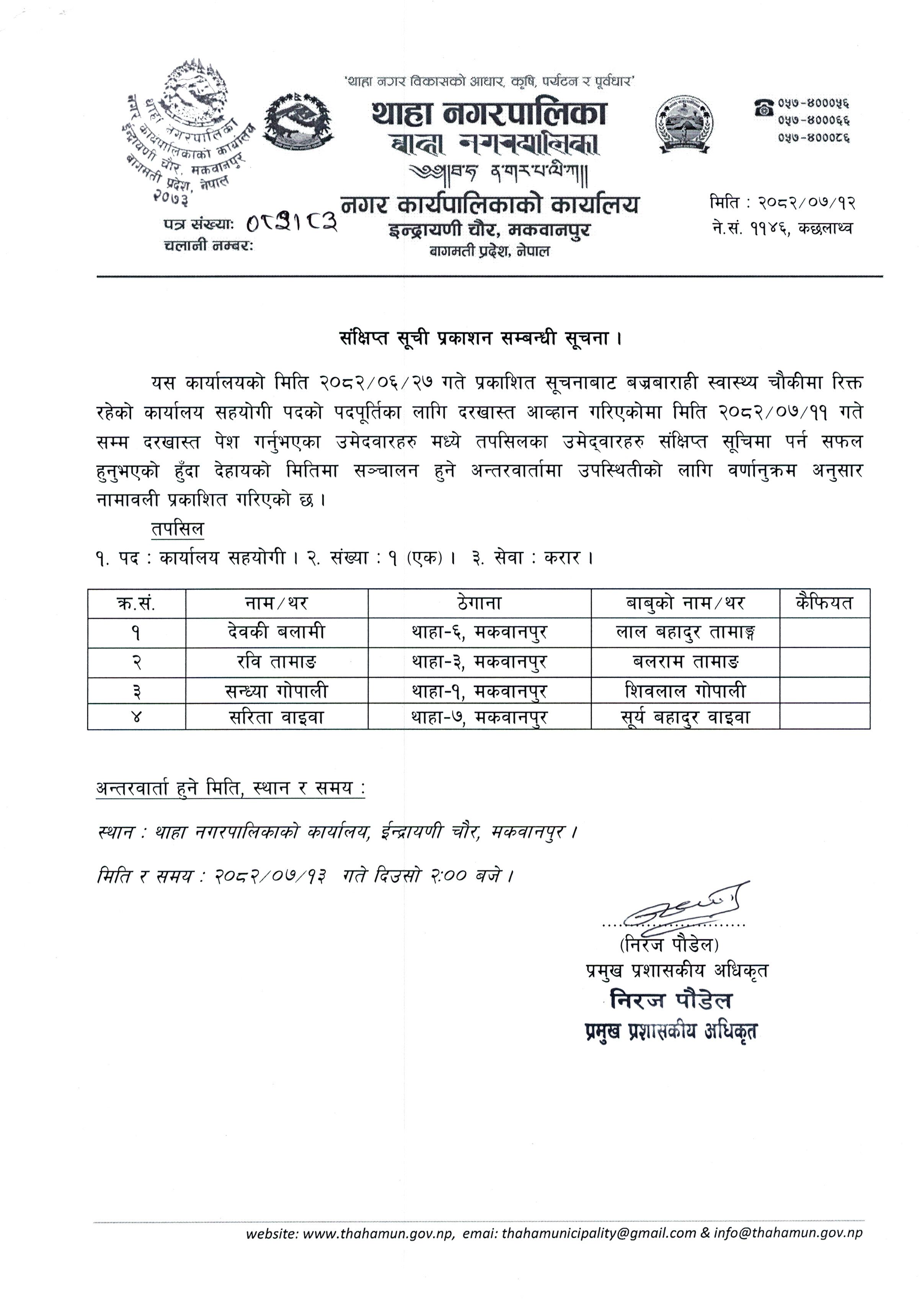 रोजगार सेवा केन्द्र थाहा नगरपालिकाको सूचना !