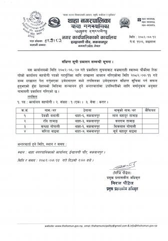 करारमा कर्मचारी आवश्यकता सम्बन्धी सूचना !
