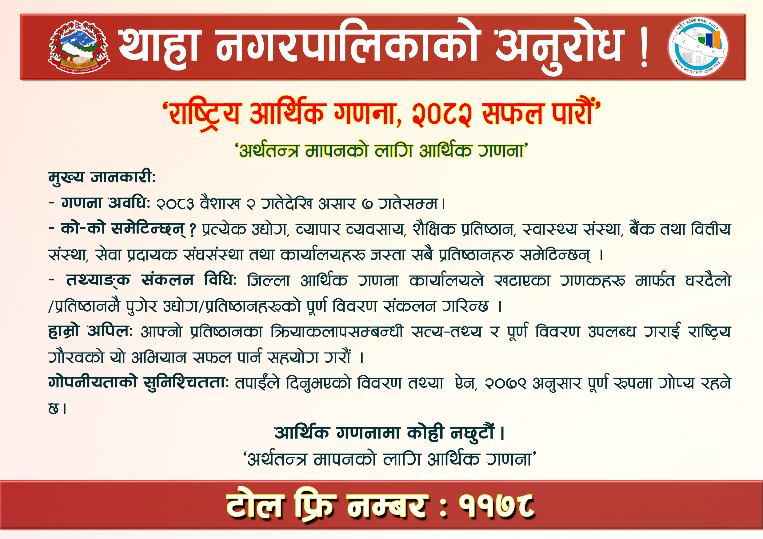 आर्थिक गणना सम्बन्धी सूचना !