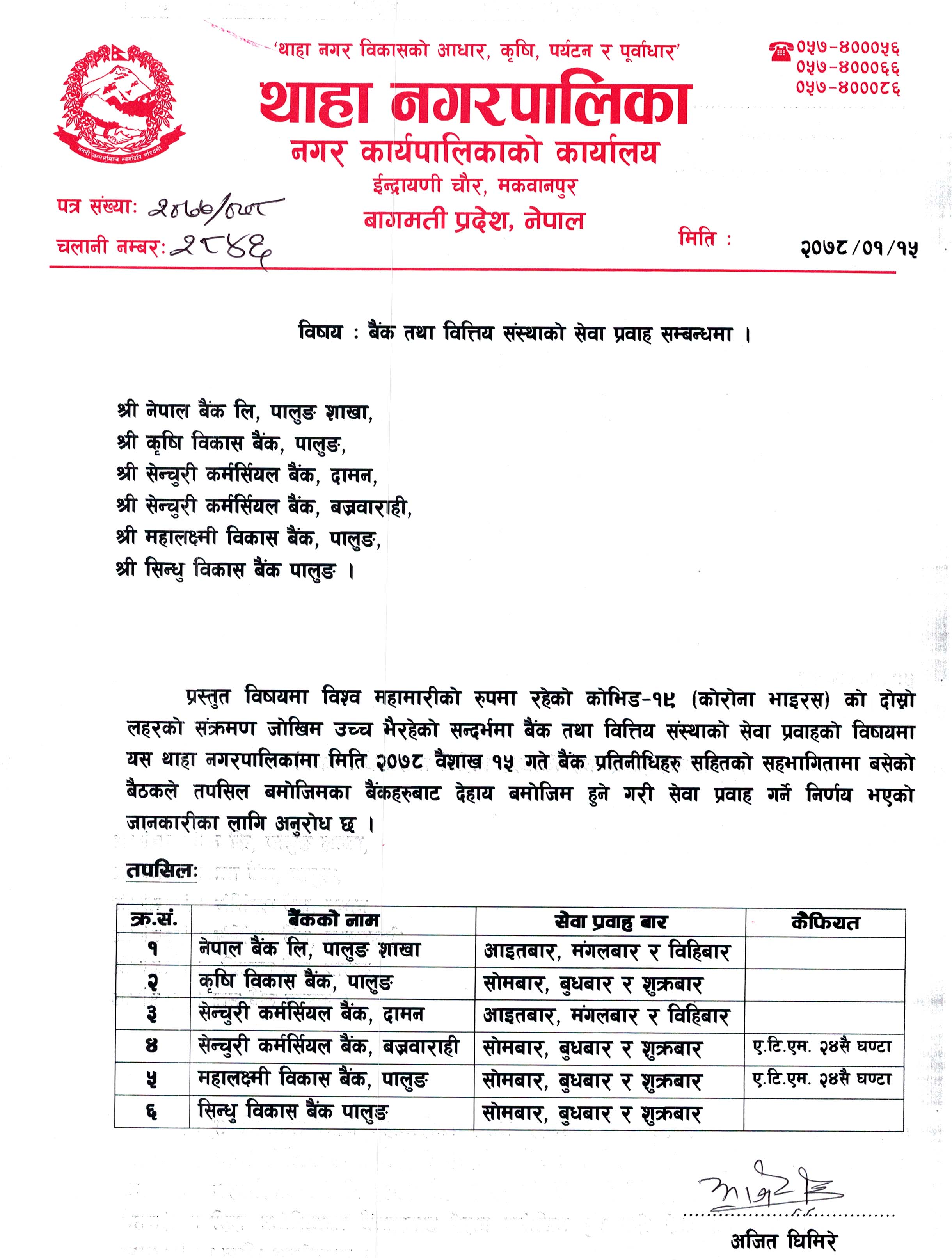 » थाहानगरको बैंकको सेवा प्रवाह तालिका
