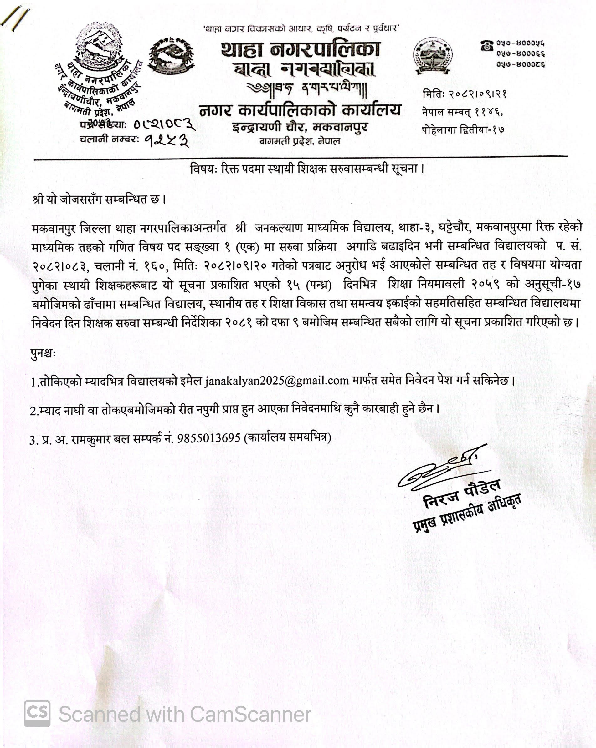 थाहा नगरपालिकाको सूचना !