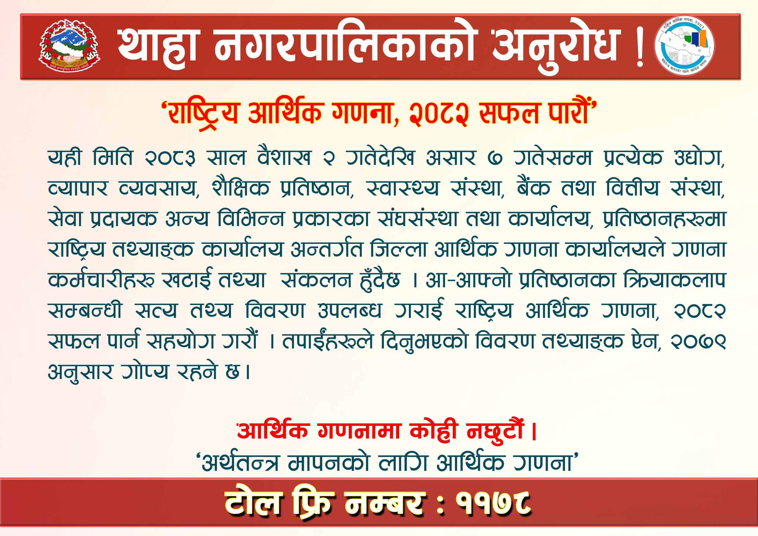 आर्थिक गणना सम्बन्धी सूचना !