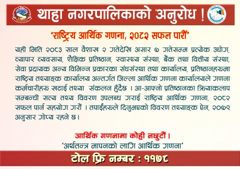 थाहा नगरपालिकाको मासिक सूचना सार्वजनिक