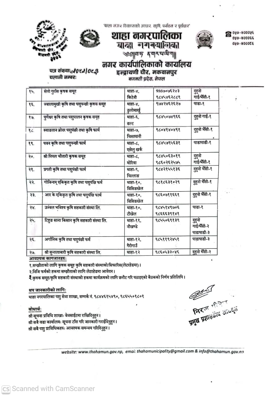 उन्नत जातको दुहुना गाई भैसी तथा पडापाडी खरिदमा ५० प्रतिशत अनुदान कार्यक्रमका लागि छनोट भएका लाभग्राहीहरुः