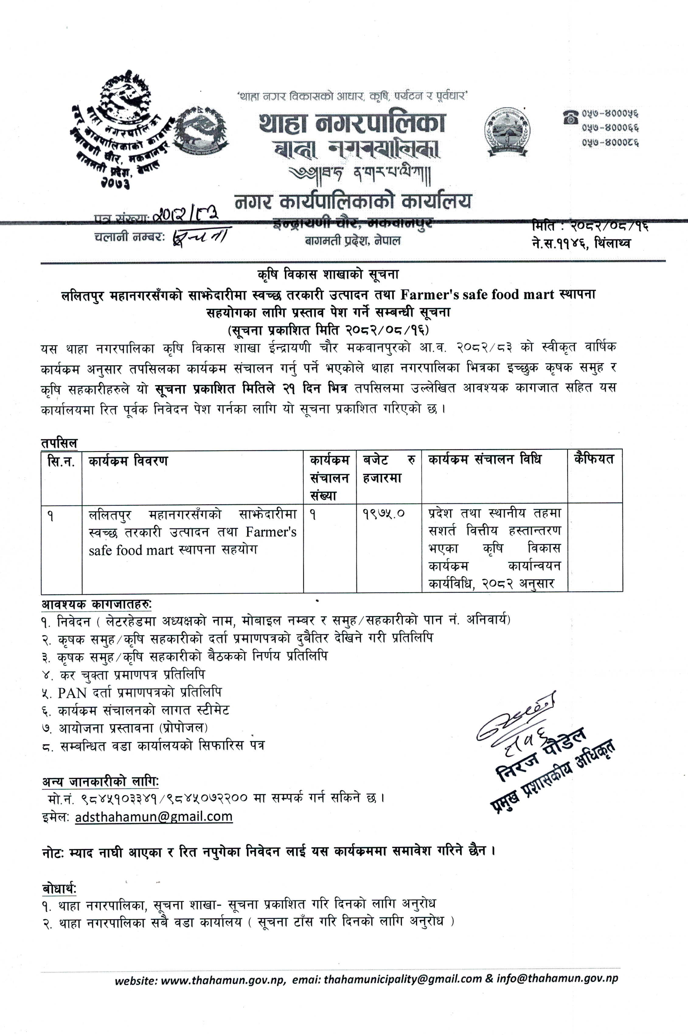 कृषि विकास शाखाको प्रस्ताव आव्हान सम्बन्धी सूचना !