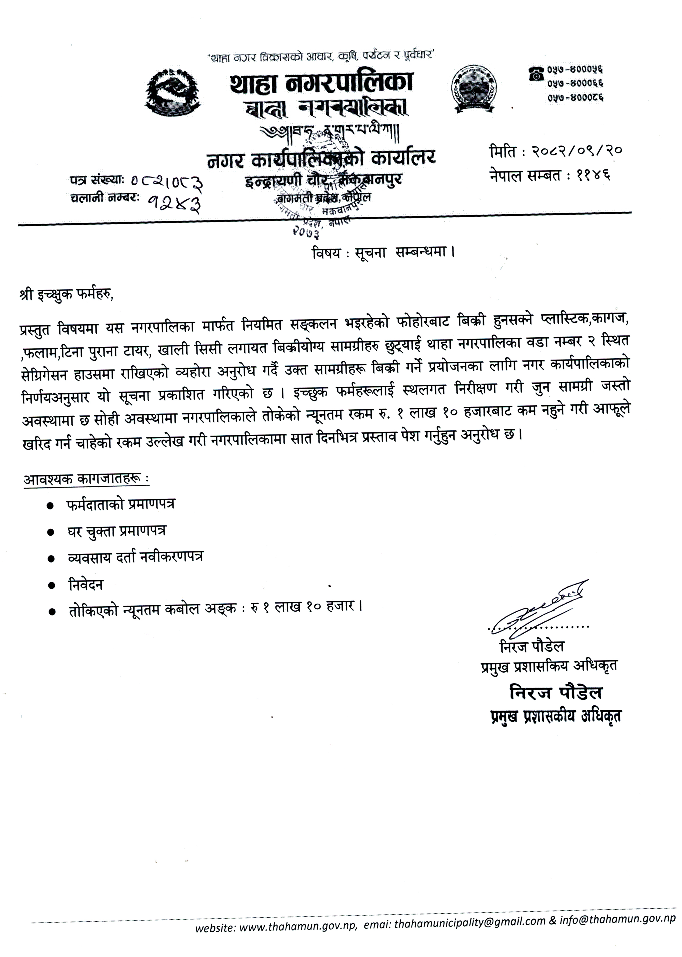 » थाहा नगरपालिकाको सूचना !