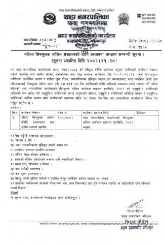 महिला सिपमुलक तालिमको लागि प्रस्ताव आव्हान सम्बन्धी सूचना !