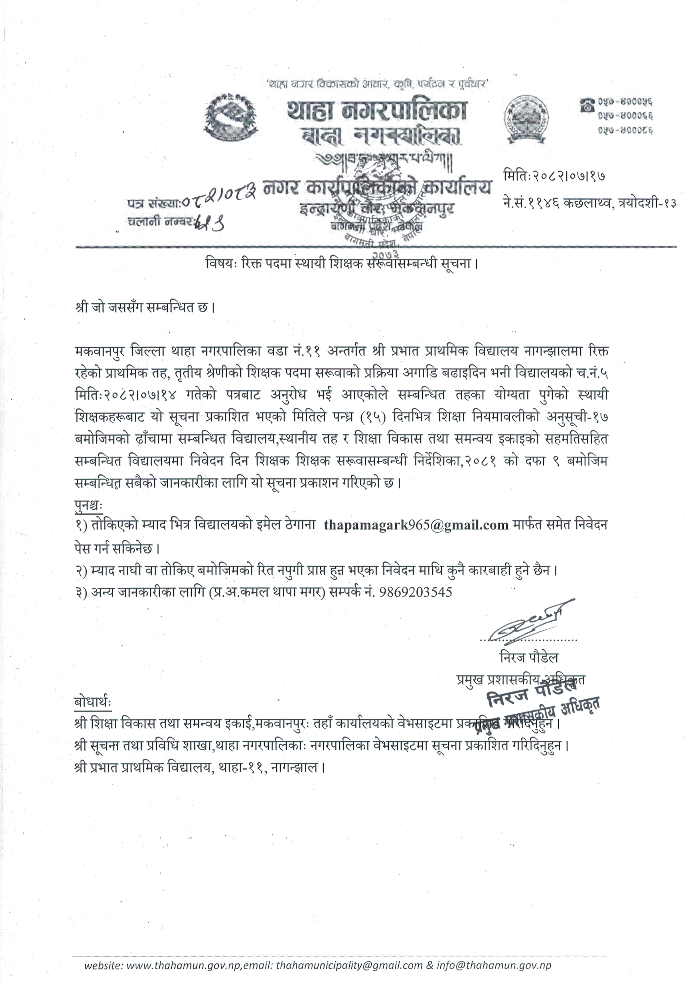 » रिक्त पदमा स्थायी शिक्षक सरुवा सम्बन्धी सूचना !