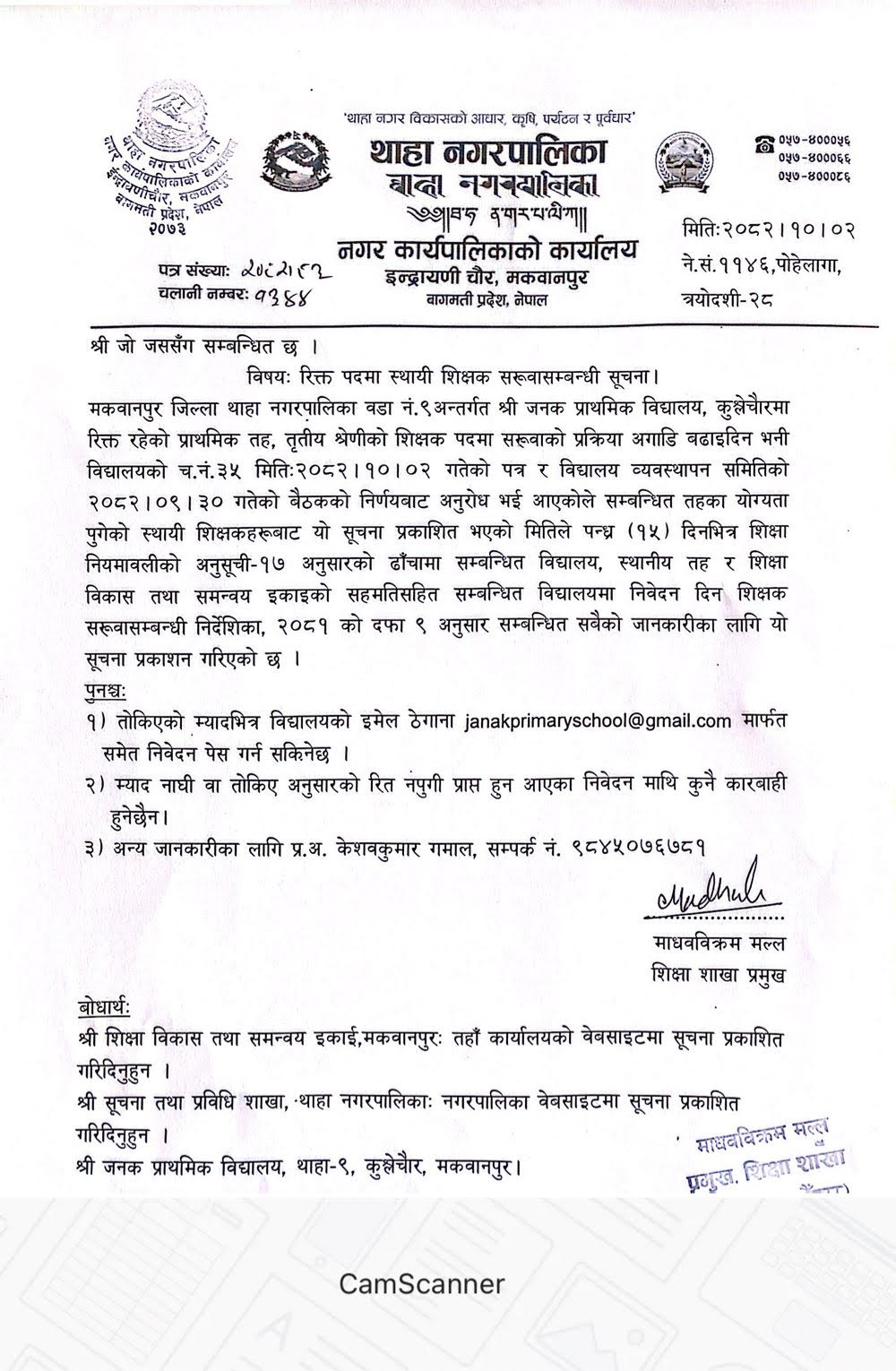 थाहा नगरपालिकाको मासिक सूचना सार्वजनिक