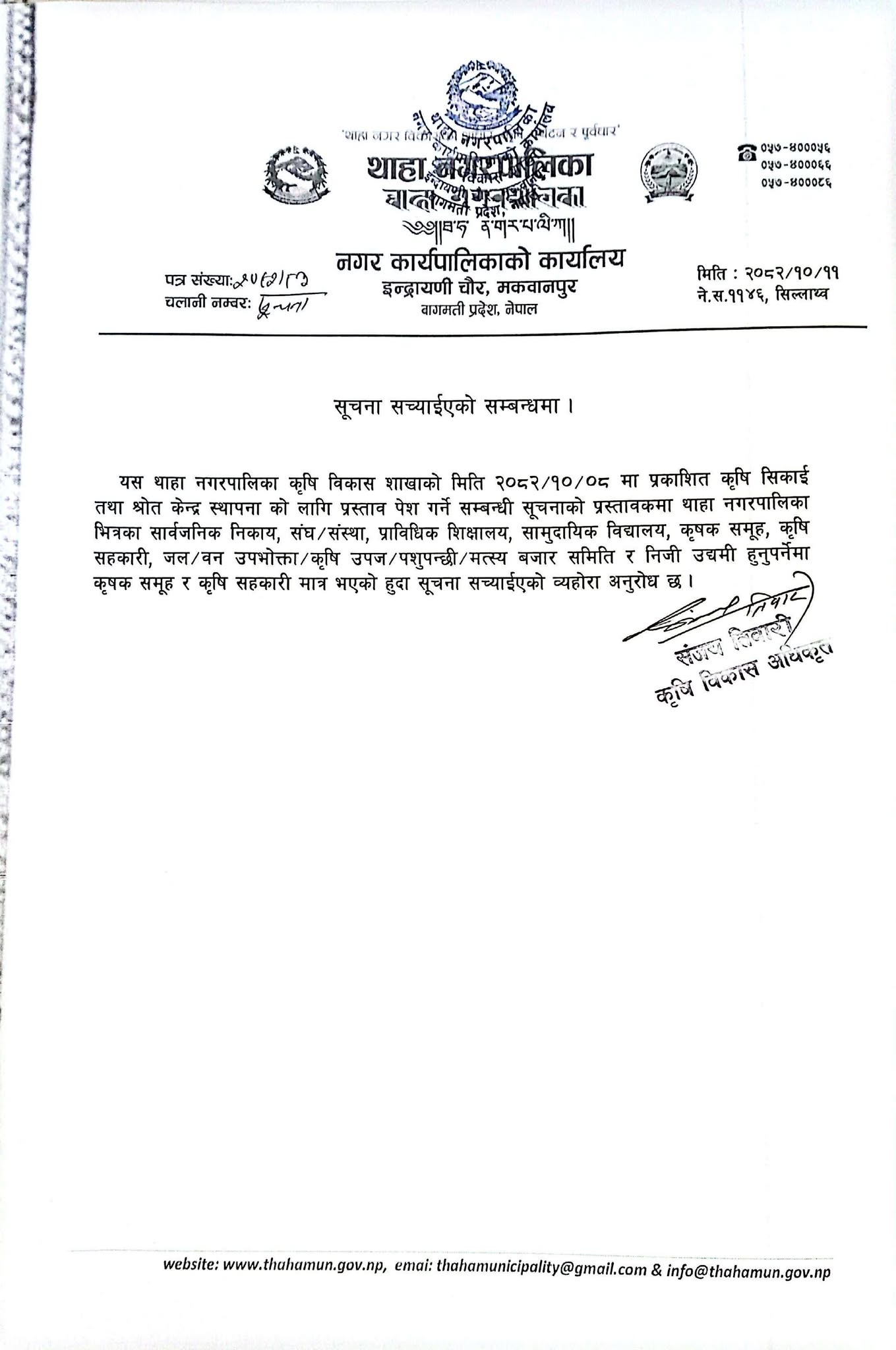 थाहानगरमा ५० प्रतिशत अनुदानमा कृषि सामाग्री (हेर्नुहोस् सूचना)