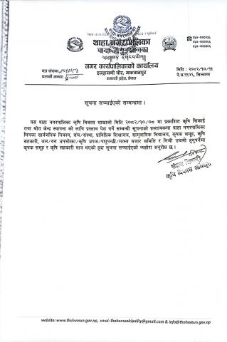 कृषि विकास शाखाको सूचना !